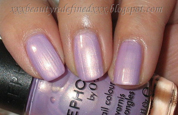 Sin-cerely Violet a light shimmery lavender with some gold shimmers running through it. My camera has a hard time picking up the gold shimmers but they are there. The polish was a bit sheer and the consistency a bit thin but you'll get a decent coverage with 3 coats. It looks quite beautiful for those days, you want to wear a softer color.